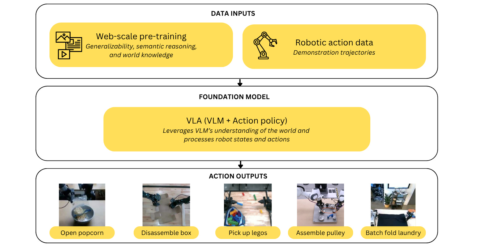 Over the last few years, we’ve seen growing excitement around leveraging large language models (LLMs) and vision-language models (VLMs) to advance robotic perception, planning, and even control. Trained on the corpus of web multimodal data, these models are showing signs of equipping robots with broad semantic reasoning, problem solving, and generalization capabilities. When paired with robotic data to solve robotics tasks, these become robotics foundation models (RFMs), using methods like imitation learning (IL) and reinforcement learning (RL) for low-level control.